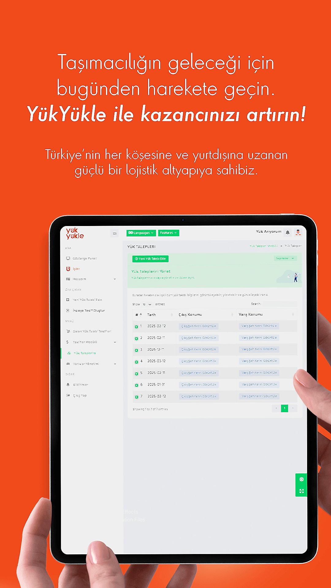 YükYükle, taşımacılık sektöründe karşılaşılan zorlukları ortadan kaldırmak için tasarlanmış yenilikçi bir platformdur. İster küçük bir işletme sahibi olun, ister büyük ölçekli bir şirket, YükYükle size her ihtiyaca uygun esnek çözümler sunar. Platformumuz sayesinde, yük taşıma işlemlerinizi hızlı, güvenli ve pratik bir şekilde gerçekleştirebilirsiniz.
